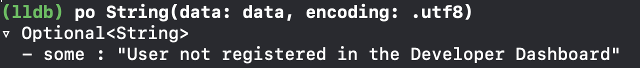 Xcode에서는 po라는 명령어를 통해서 디버깅을 할 수가 있다. Data 타입은 바이너리 형식이기 때문에 사람이 읽을 수가 없다. 서버에서 통신이 들어오는데 JSON이 아니라면 올 타입은 무엇일까? 대부분의 경우에는 String이라는 생각을 했고 이를 이용하여 명령어를 찾아봤다.