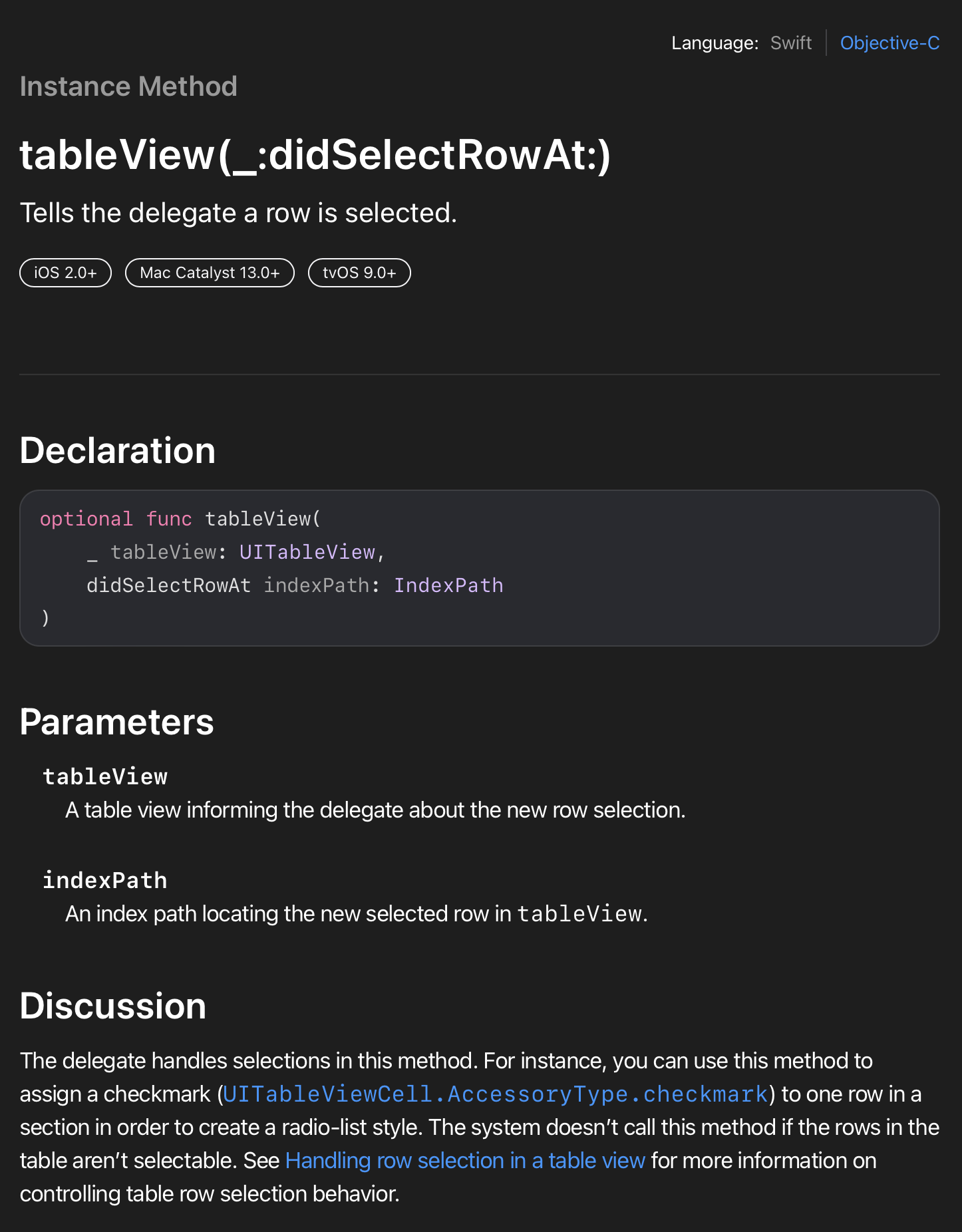 func tableView(_ tableView: UITableView, didSelectRowAt indexPath: IndexPath) {